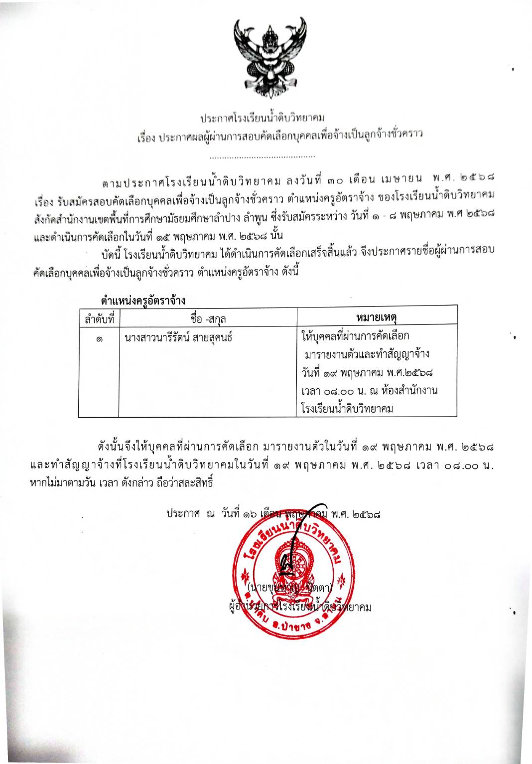 ประกาศผลผู้ผ่านการสอบคัดเลือกครูอัตราจ้าง ภาษาจีน
