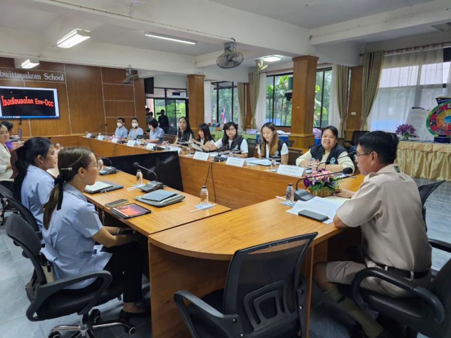 วันที่ 21 สิงหาคม 2567 นายนิพนธ์ ไชยเจริญ ผู้อำนวยการโรงเรียนน้ำดิบวิทยาคม พร้อมคณะครูให้การต้อนรับและแลกเปลี่ยนรู้กับ เจ้าหน้าที่จากกองโรคจากการประกอบอาชีพและสิ่งแวดล้อมกรมควบคุมโรค กระทรวงสาธารณสุข และสำนักงานกองทุนสนับสนุนสร้างเสริมสุขภาพ ในการลงพื้นที่ ติดตามผลการดำเนินโรงเรียนต้นแบบ ขับเคลื่อน พ.ร.บ. และต้นแบบ Safety School อากาศสดใส อาหารปลอดภัย ใส่ใจทุกอาคาร เพื่อส่งเสริมให้โรงเรียนมีการป้องกันปัจจัยเสี่ยงที่อาจจะก่อให้เกิดผลกระทบต่อสุขภาพจากการประกอบอาชีพและจากสิ่งแวดล้อม ณ ห้องโสตทัศนศึกษาโรงเรียนน้ำดิบวิทยาคม S:0