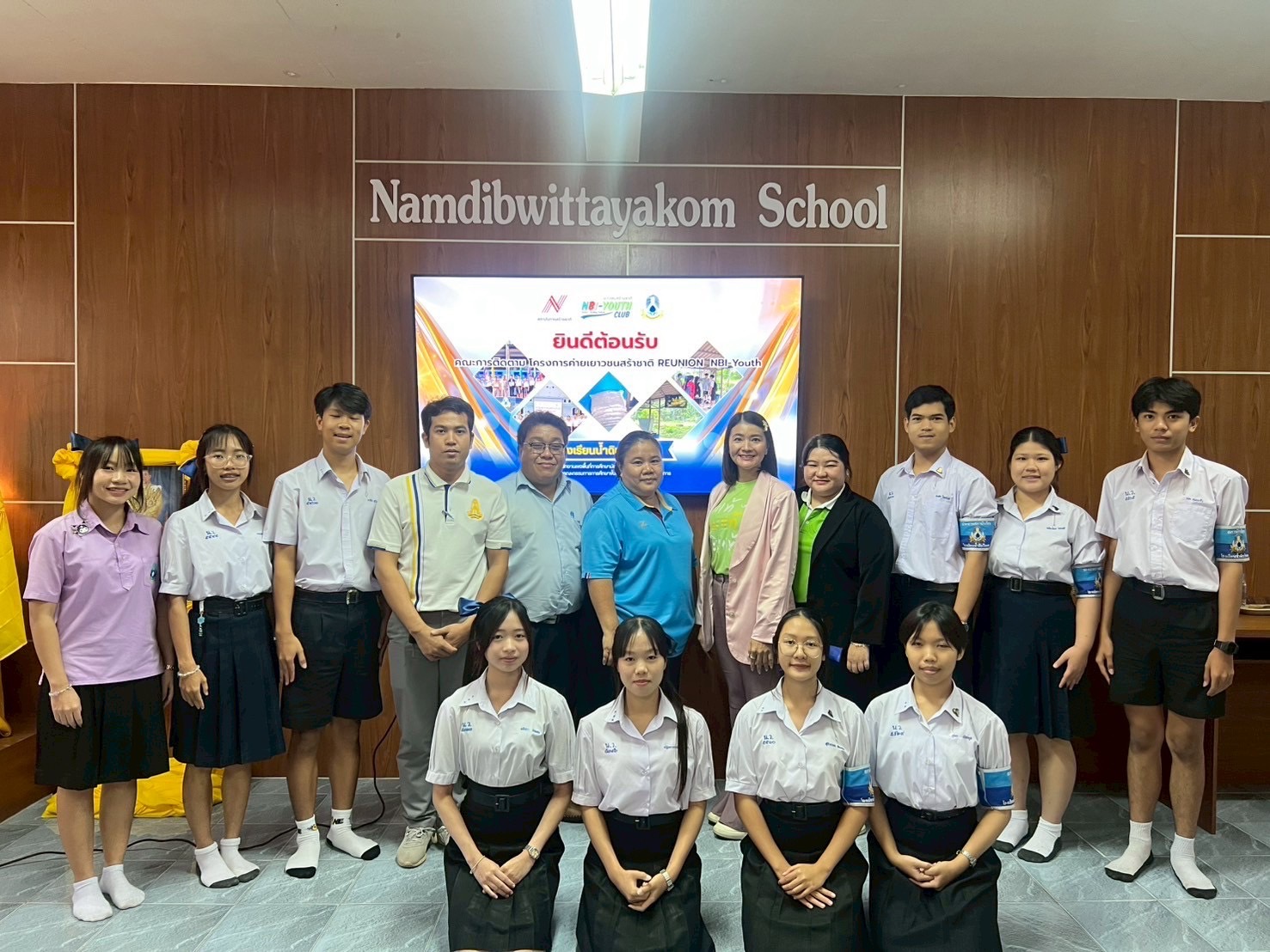 วันที่ 28 สิงหาคม 2568 นางสาวเบญจวรรณ ไชยองการ ผู้ช่วยผู้อำนวยการโรงเรียนน้ำดิบวิทยาคม ได้นำคณะนักเรียนให้การต้อนรับคณะติดตามงาน “โครงการค่ายเยาวชนสร้างชาติ REUNION NBI - Youth” อย่างอบอุ่น