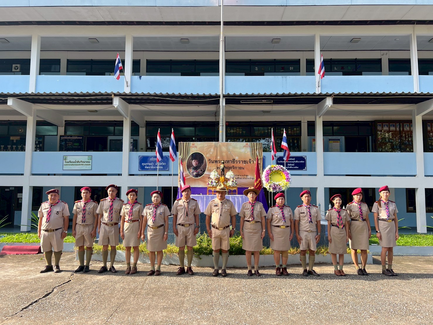 โดยในปีนี้ นับเป็นวาระสำคัญเนื่องในโอกาสครบรอบ 100 ปีแห่งการสวรรคต ของพระองค์ โรงเรียนได้จัดกิจกรรมประกอบพิธีวางพวงมาลา กล่าวถวายราชสดุดี และร่วมกันยืนสงบนิ่งเพื่อแสดงความรำลึกถึงพระมหากรุณาธิคุณ พร้อมทั้งปลูกฝังจิตสำนึกแห่งความจงรักภักดีและความเป็นลูกเสือที่ดีแก่ผู้เรียน นอกจากนี้ โรงเรียนน้ำดิบวิทยาคมยังได้จัดกิจกรรม จิตสาธารณะและบำเพ็ญประโยชน์ เพื่อปลูกฝังจิตอาสาและความมีระเบียบวินัยแก่ลูกเสือ–เนตรนารีทุกหมู่เหล่า โดยนักเรียนและครูผู้กำกับลูกเสือร่วมกันทำความสะอาดบริเวณอาคารเรียน สนาม และพื้นที่ส่วนกลางของโรงเรียน รวมถึงการปรับปรุงภูมิทัศน์ให้สะอาด สวยงาม น่าใช้