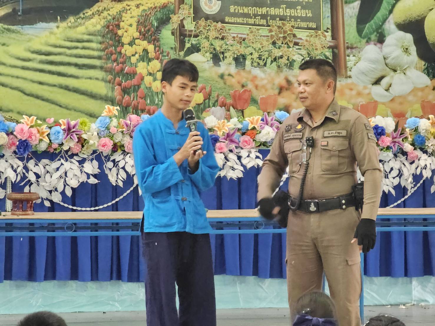วันที่ 14 มิถุนายน 2567 ด.ต.อมรศักดิ์ อรุณวรรณ จนท.จร. สภ.ป่าซาง ได้มาให้ความรู้กับนักเรียนระดับชั้นมัธยมศึกษาปีที่ 1-6 เกี่ยวกับกฎหมายจราจร การใช้รถบนท้องถนน และเตือนเยาวชนอายุต่ำกว่า 18 ปี ออกจากบ้านหลังเวลา 22:00 น. เพื่อป้องกันการมั่วสุมก่อเหตุทะเลาะวิวาท ณ โรงเรียนน้ำดิบวิทยาคม