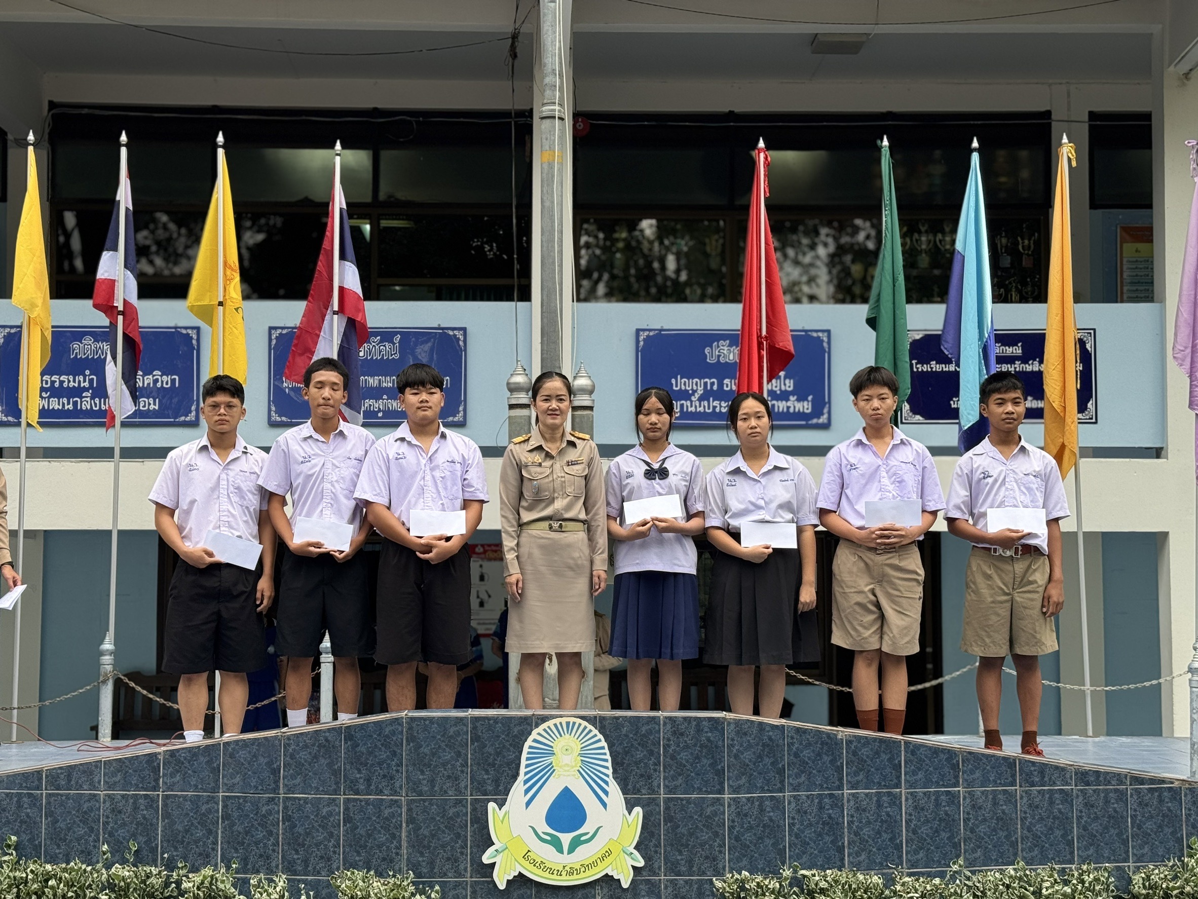วันที่ 5 พฤศจิกายน 2567 นางสาวกาญจนา พรหมซาว รองผู้อำนวยการ โรงเรียนน้ำดิบวิทยาคม เป็นตัวแทนมอบทุนการศึกษา จากพระครูวิโรจน์ ชยาภรณ์ จำนวน 5 ทุน ๆ ละ 1,000 บาท และทุนแม่ชี ธมนาท อรุณศักดิ์ จำนวน 2 ทุน ๆ ละ 1,000 บาท ให้แก่นักเรียนโรงเรียนน้ำดิบวิทยาคม ณ ลานกิจกรรมหน้าเสาธงโรงเรียนน้ำดิบวิทยาคม